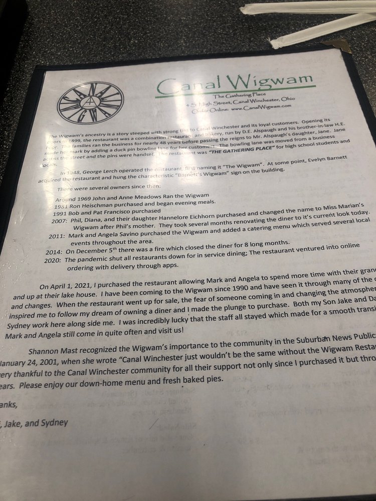 Located in Canal Winchester, Canal Wigwam brings a nostalgic vibe reminiscent of classic '50s diners, combining charm with contemporary flavors. The menu showcases New American cuisine, perfect for breakfast, brunch, and lunch enthusiasts. Popular selections include their all-you-can-eat French toast and well-spiced meatloaf, which evoke the comfort of home cooking with a twist.